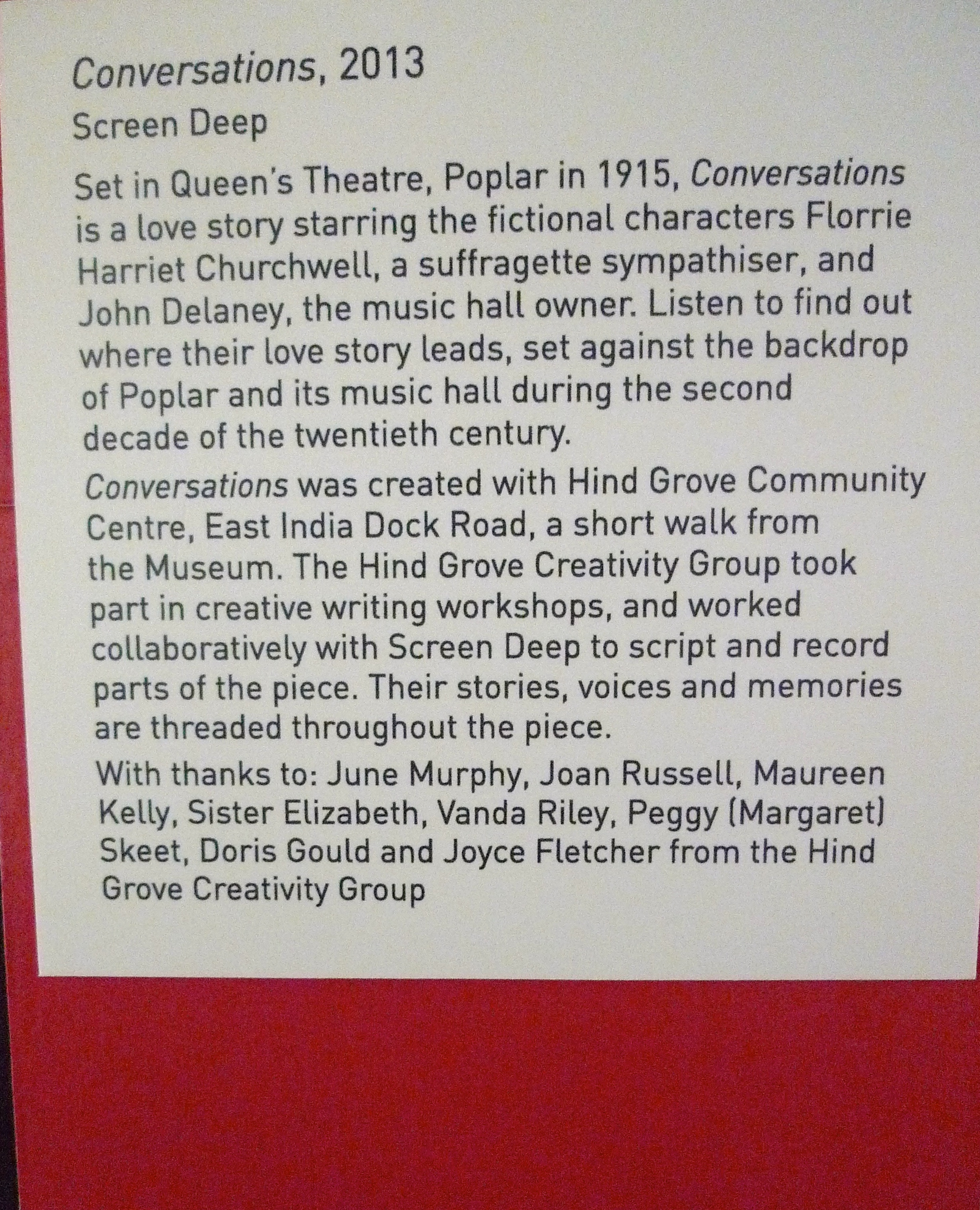 Going back to these often tricky scenarios have opened a few unexpected surprises. More often than not, you don’t feel the same way anymore and it was never quite how you imagined anyway. Last year, I was commissioned by the Museum of London Docklands to work on a sound piece for their Many East Ends Gallery. I worked with an incredible writer facilitator, sound engineer, actors, museum staff and above, local women who shared their creativity and memories.